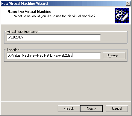 Here we simply name the virtual machine and specify a location for the files that make