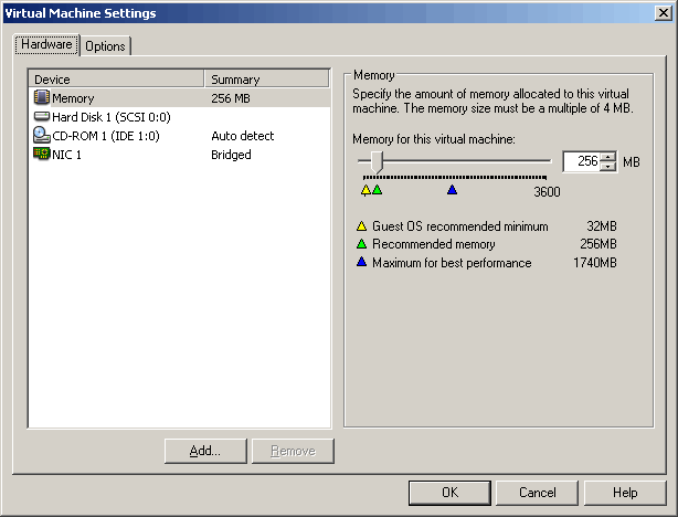 get to the "Virtual Machine Settings" configuration screen shown below. Once there, change the