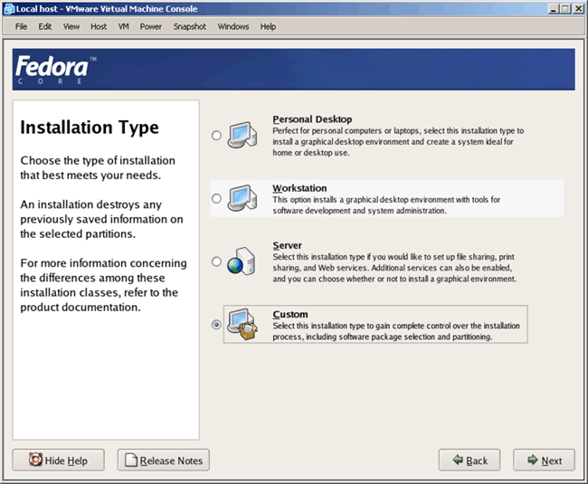 installing Fedora Core directly to an available piece of hardware. In any case, whether you