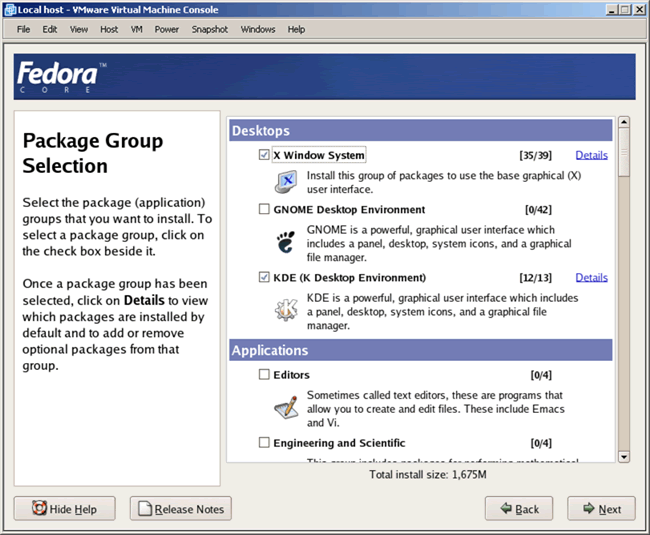 want. In any case, I have selected "X Window System", "KDE (K Desktop Environment)" and
