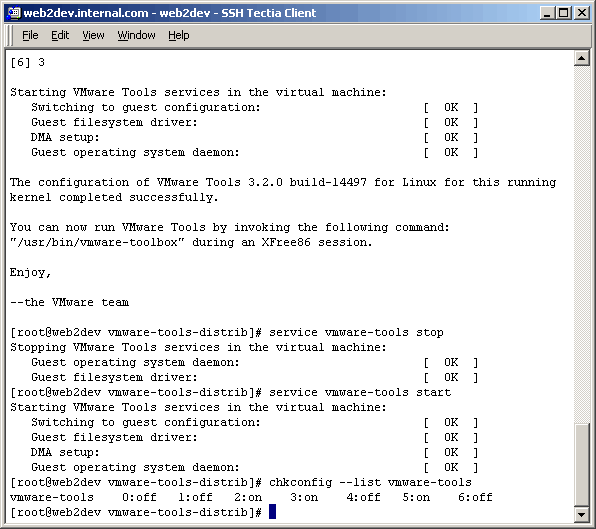 "vmware-tools" are set to start in run levels 2, 3, and 5.