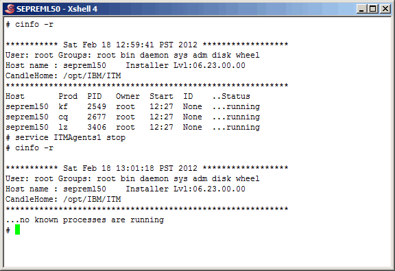 shut it down. We are going to use the Linux "service" command to stop all ITM related