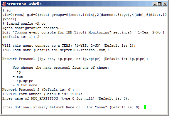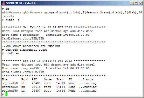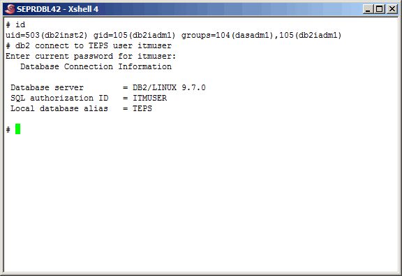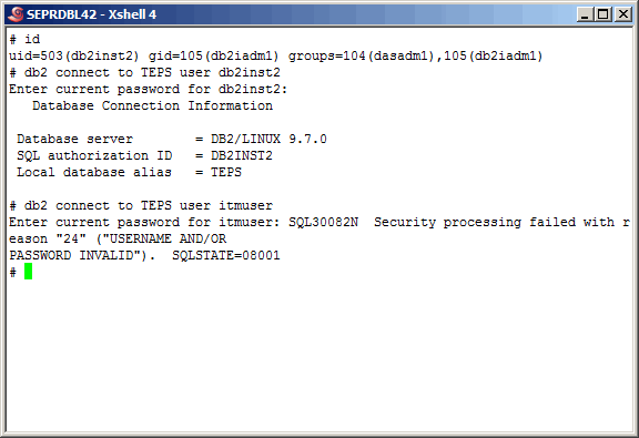 "db2inst2" but fail using "itmuser". We expected this as the "itmuser" account does