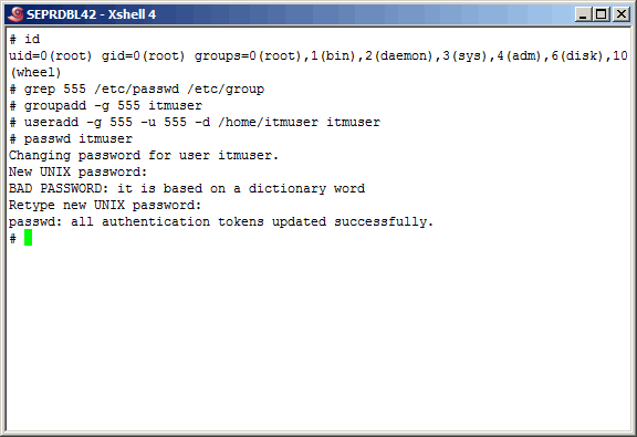 Here we create the "itmuser" group and user, and assign it the appropriate password. It is