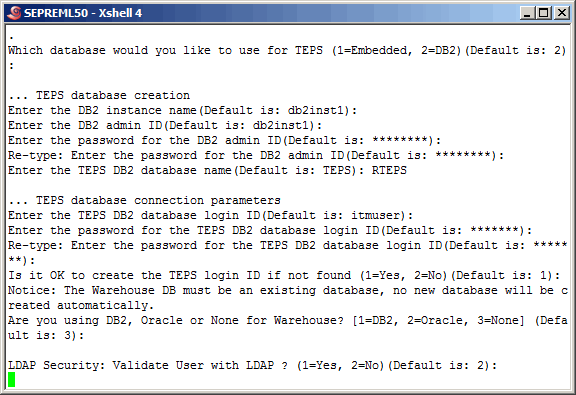 More defaults, until we reach the point of entering the TEPS database. We will use the defined