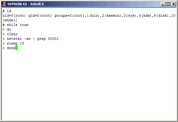 On the remote database server, we start a loop that checks for connectivity to the remote