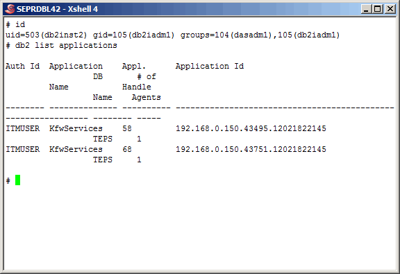 As more proof we can list the db2 applications as shown here.