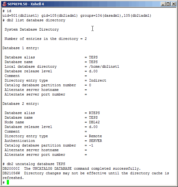 are not "hard wired" to the name "TEPS" and that we can use the DB2 alias "RTEPS" we will uncatalog