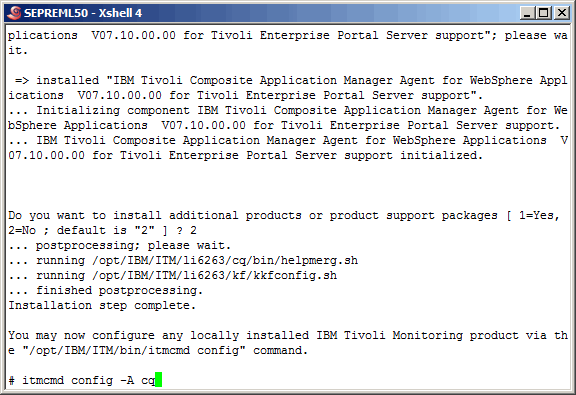 the TEPS, the database will also change, as you will see. So let's use the "itmcmd config -A cq"