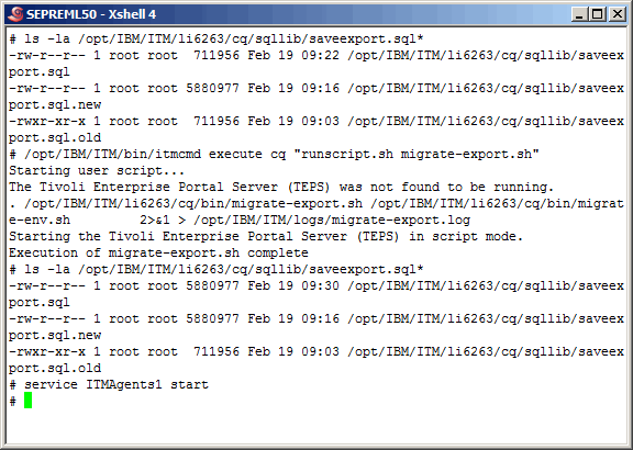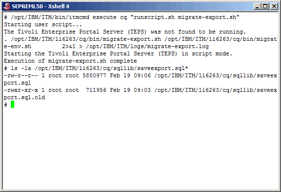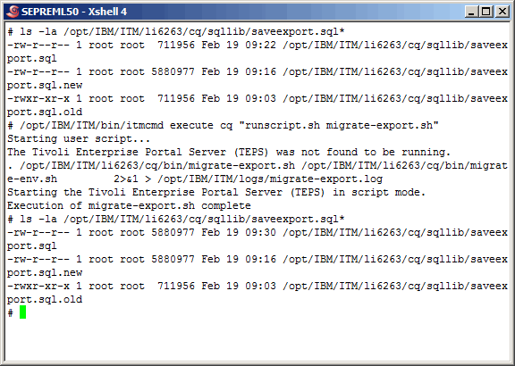 Here we run the migrate-export.sh script again, however prior to running it, we renamed the previous