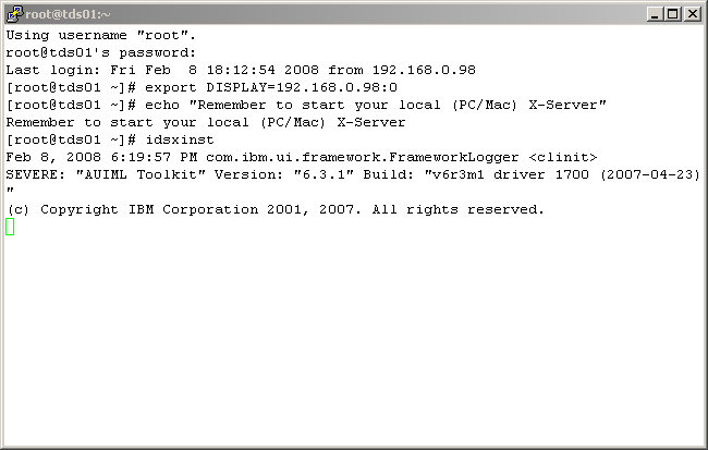First, let's log into the TDS server, and do a little bit of setup work, including exporting the DISPLAY variable