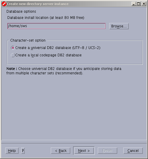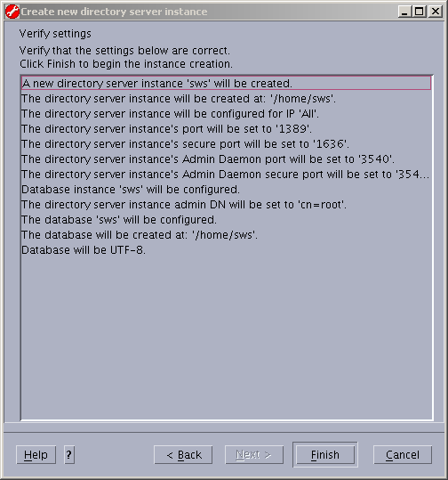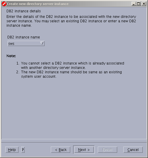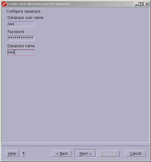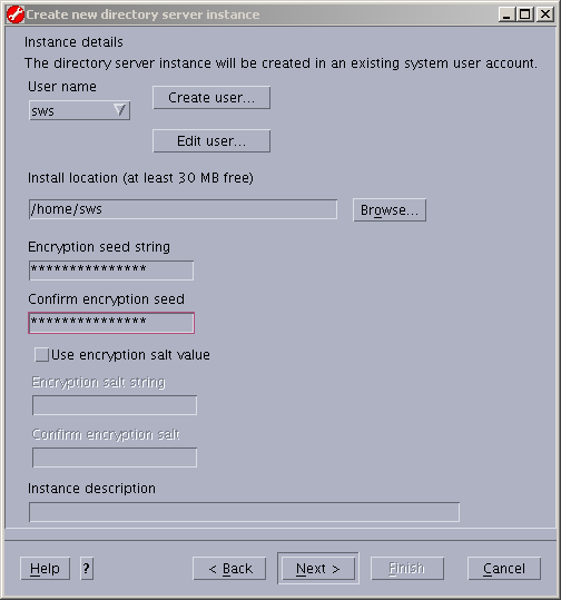 Notice the new LDAP instance owner is "sws". Fill in the remainder of the information