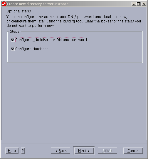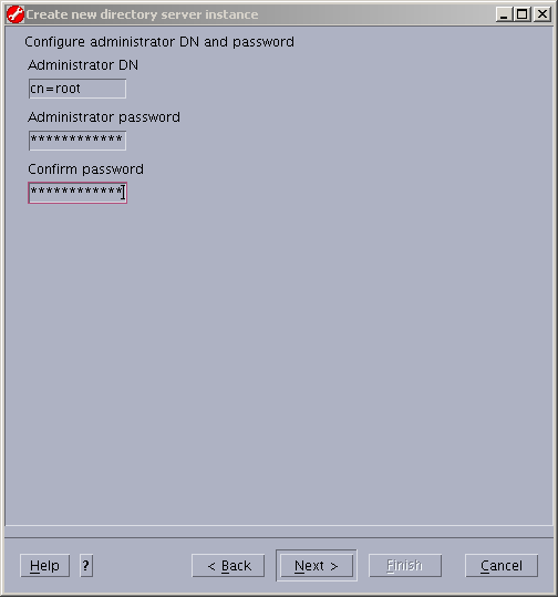 Define the administrator distinguished name (DN), assign it a password and
