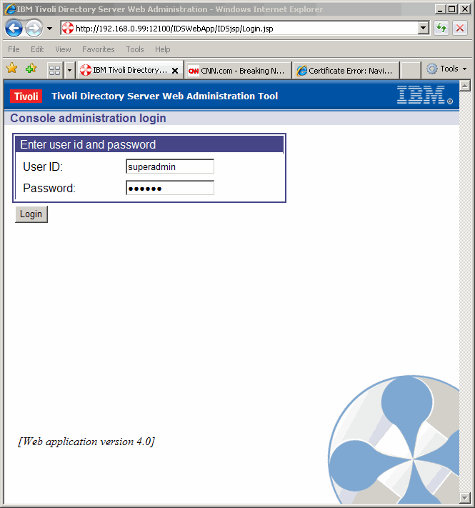 in as "superuser" should we like, or we can log in to a particular LDAP instance. We choose the later