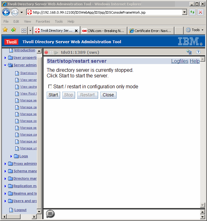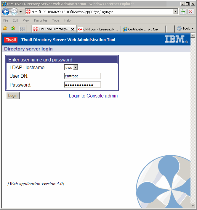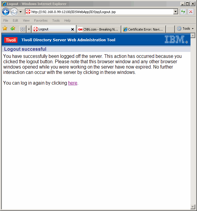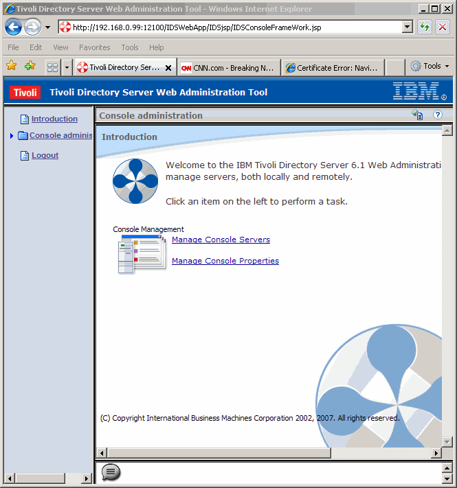 Now we see that we have identified a console for the new LDAP instance. Click Logout