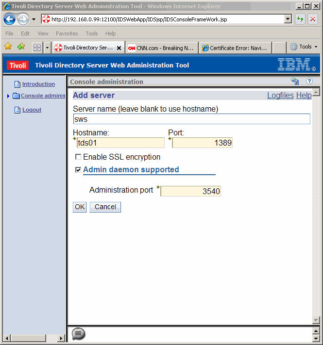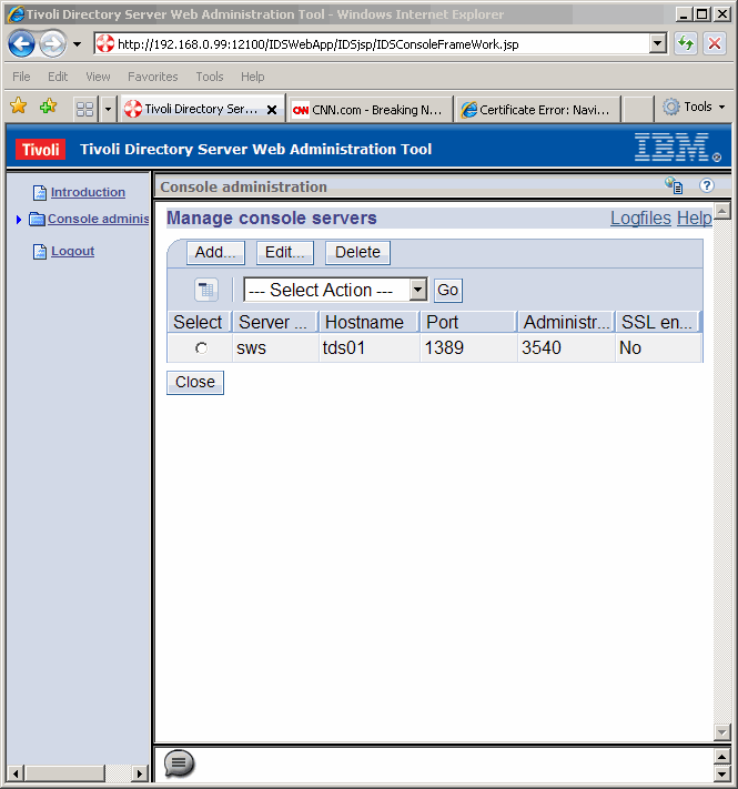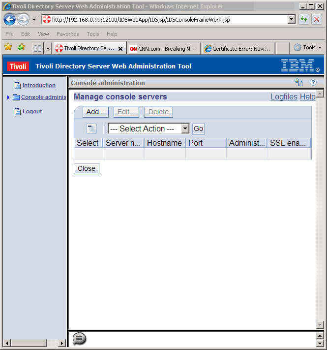 Click Add... to add a console server for the newly created LDAP instance.
