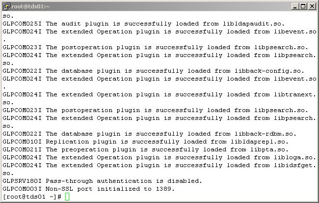 If the LDAP instance started successfully, you will see something like the following: