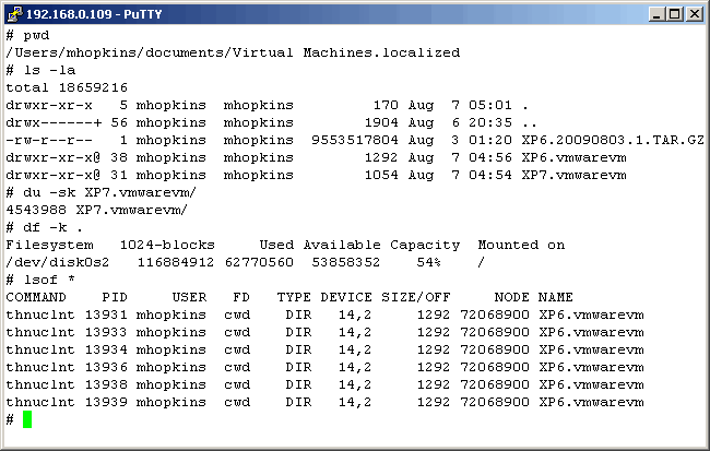 show it, we are logged into the Mac as the virtual machine (VM) owner, mhopkins. Notice