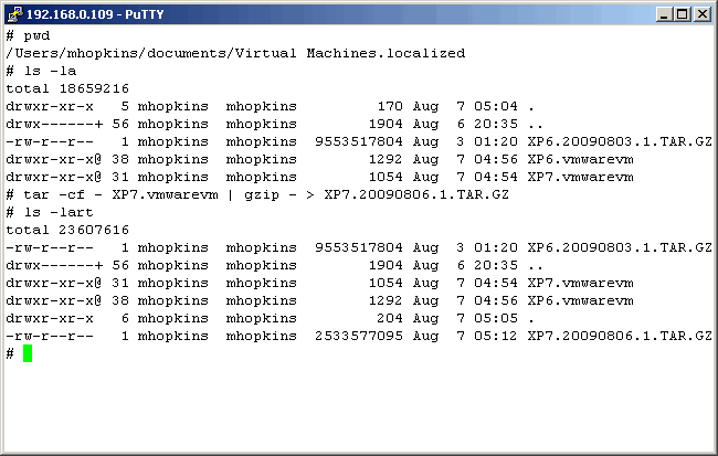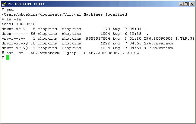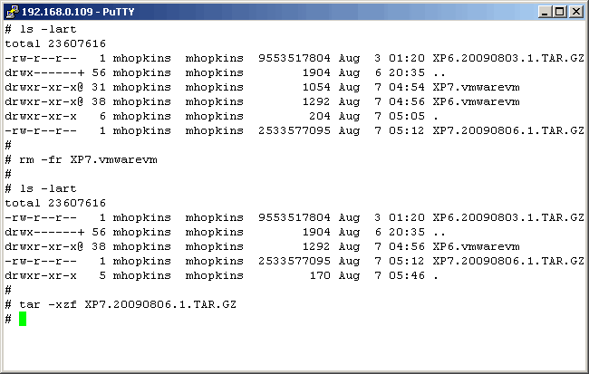 Now, let's restore the VM with the UNIX "tar" command. Note that we use the "z" flag here.
